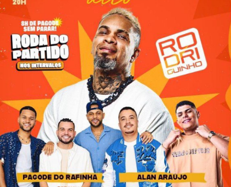 A programação musical traz Rodriguinho, um dos principais nomes do pagode nacional, além de Alan Araújo e Pagode do Rafinha, talentos locais que vêm ganhando cada vez mais espaço em Maceió. Para completar a resenha, durante os intervalos, o público vai curtir a Roda do Partido, com Gab Alcântara e Pedro Jardel, garantindo que o som e a festa não parem nem por um segundo. É pagode do início ao fim.