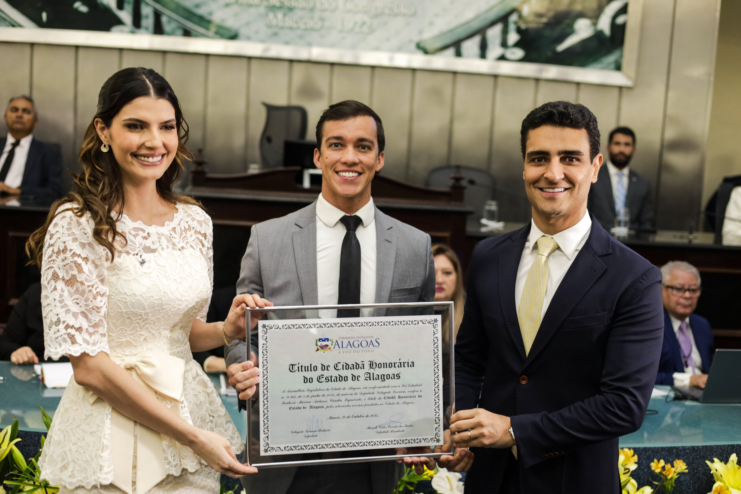 Natural do Pantanal, nascida em Cuiabá (MT), Marina Cândia vive em Alagoas há seis anos. Administradora de formação e casada com o prefeito JHC, com quem tem dois filhos, ela expressou profunda emoção ao receber o título e agradeceu ao povo alagoano pela acolhida e ao Parlamento pela homenagem. “Essa é uma emoção que vai muito além do falar. Desde que cheguei, fui acolhida de uma forma única e já me senti alagoana. A receptividade do povo, desde quando me coloquei à disposição nas ruas, me deu esse sentimento de pertencimento. É uma grande honra saber que o plenário desta Casa votou de forma unânime essa proposta. Esse dia é mais um marco para a minha história”, afirmou.