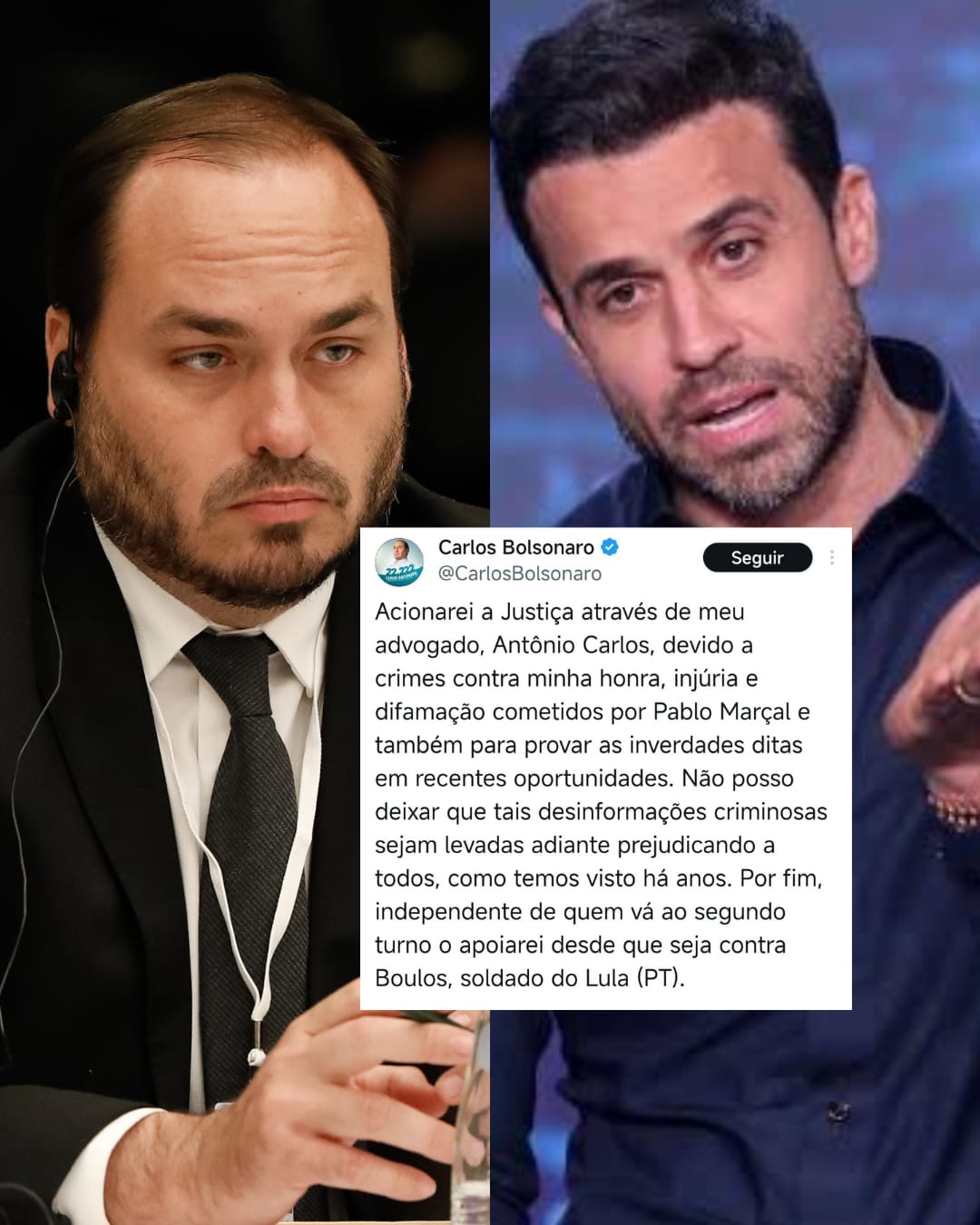Após os ataques, Carlos afirmou pelo X, que pretende acionar a Justiça contra Marçal por crimes contra honra, difamação e injúria.