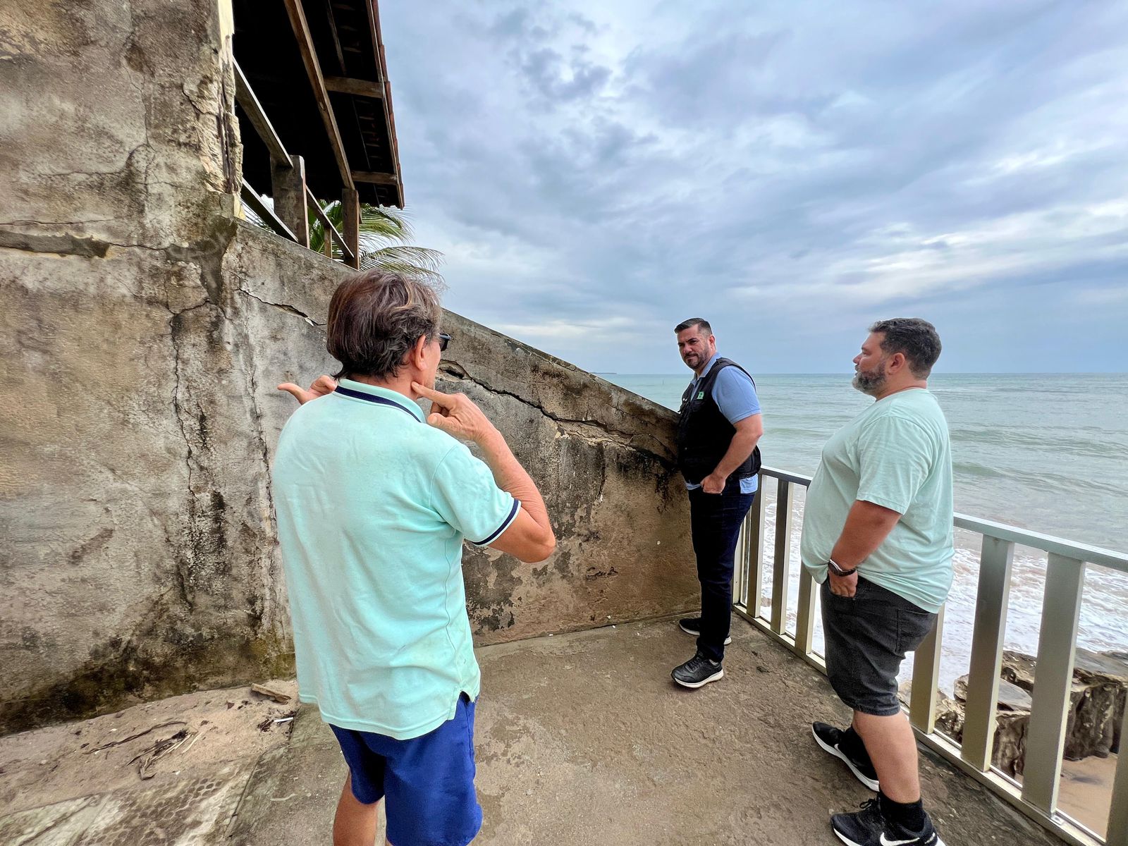 Leonardo Dias conversou com moradores da região e constatou que a situação é preocupante. Imóveis localizados à beira-mar apresentam rachaduras devido ao forte impacto de ondas. Alguns muros foram destruídos e casas podem desabar.