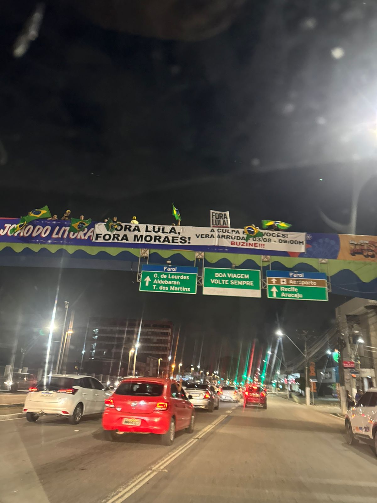Apoiadores do ex-presidente Jair Bolsonaro realizaram uma mobilização na passarela do Cepa, em Maceió, nesta sexta-feira (1). Com faixas, cartazes e gritos de ordem, eles chamaram atenção dos motoristas que passavam pela Avenida Fernandes Lima, pedindo que buzinassem em apoio ao movimento.