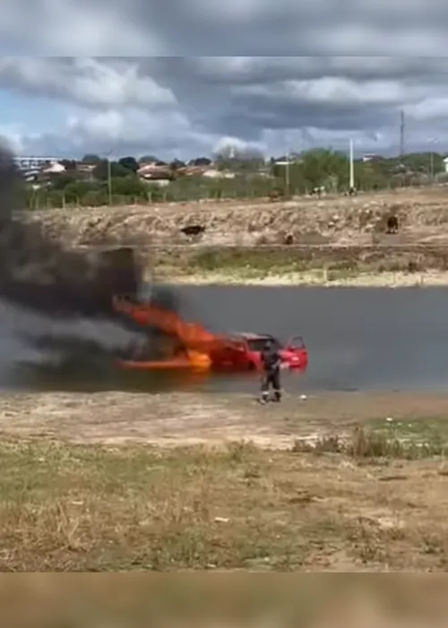 Um carro pegou fogo e ficou completamente destruído nesta sexta (13), em Piranhas, no sertão de Alagoas. O que chama a atenção no caso é que o veículo foi empurrado nas águas de uma barragem em uma tentativa de conter o fogo.