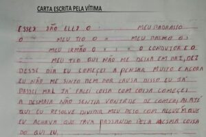 Após a chegada da carta aos gestores da escola, a vítima passou por uma escuta especializada no Centro de Referência Especializado de Assistência Social (Creas) do município e foi submetida ao exame de conjunção carnal, que confirmou os fatos. Para receber todo apoio e suporte necessário, a criança foi encaminhada para a casa de uma tia.