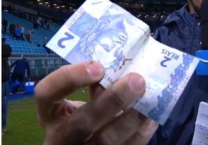 Após partida entre Grêmio X CSA, dirigente do time gaúcho atira nota de R$ 2 reais no árbitro da partida 21 de maio de 2025