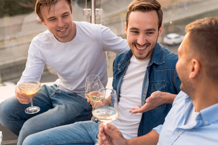 Pesquisas longitudinais mostram que o tempo que homens passam com amigos está positivamente associado ao bem-estar psicológico, propósito de vida e sensação de domínio sobre o ambiente — e isso independe de estarem em um relacionamento ou não. Homens, em média, gastam várias horas por semana com amigos e esse convívio tem impactos comprovados no bem-estar emocional.