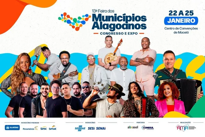 Além de debates técnicos, exposições institucionais e experiências gastronômicas, a Feira dos Municípios Alagoanos – Congresso e Expo 2026 contará com uma ampla programação cultural entre os dias 22 e 25 de janeiro, no Centro Cultural de Exposições Ruth Cardoso. As apresentações artísticas são resultado de parceria com a Fecomércio, por meio do Sesc.