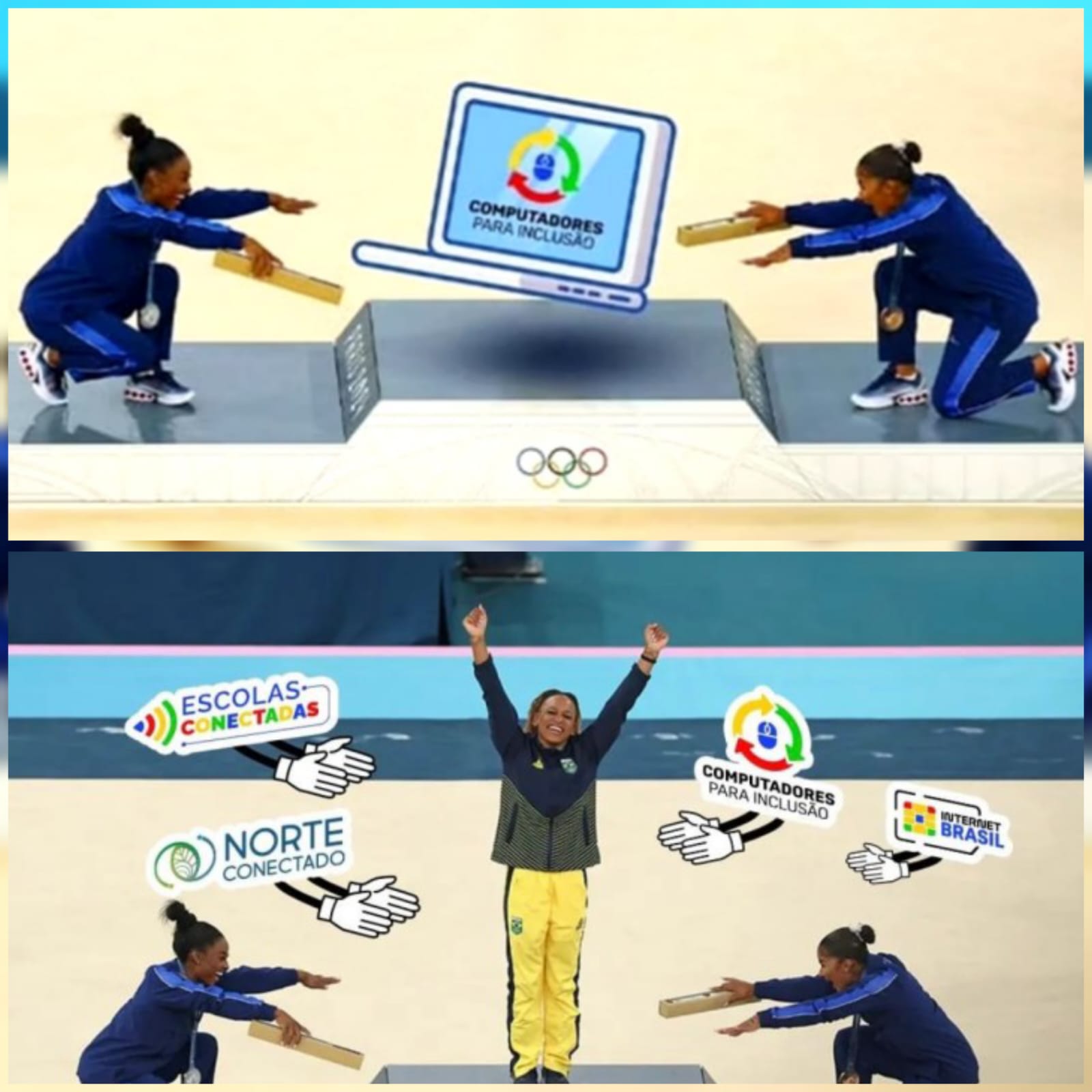 O Ministério das Comunicações retirou do ar um post que simulava a foto histórica do 1º lugar de Rebeca Andrade no pódio das Olimpíadas, e que teve a atleta substituída por um computador, em referência à programas de conectividade incentivados pelo Governo Federal em unidades públicas de ensino.