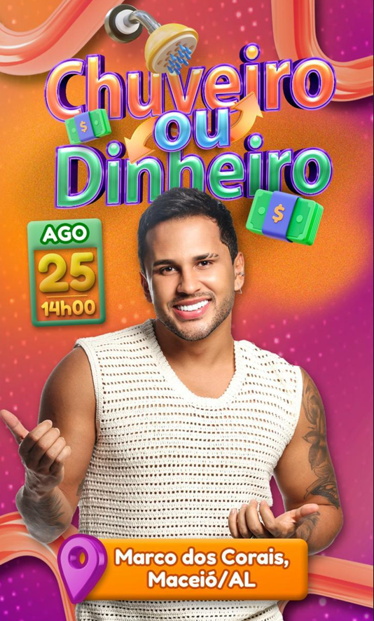 A cidade de Maceió se prepara para receber a gravação da quinta edição do famoso quadro “Chuveiro ou Dinheiro” do programa Eita Lucas do Sbt, apresentado pelo influenciador digital Lucas Guimarães. O evento acontecerá no dia 25 de agosto, no Marcos dos Corais a partir das 14h, prometendo muita diversão e surpresas para o público presente.