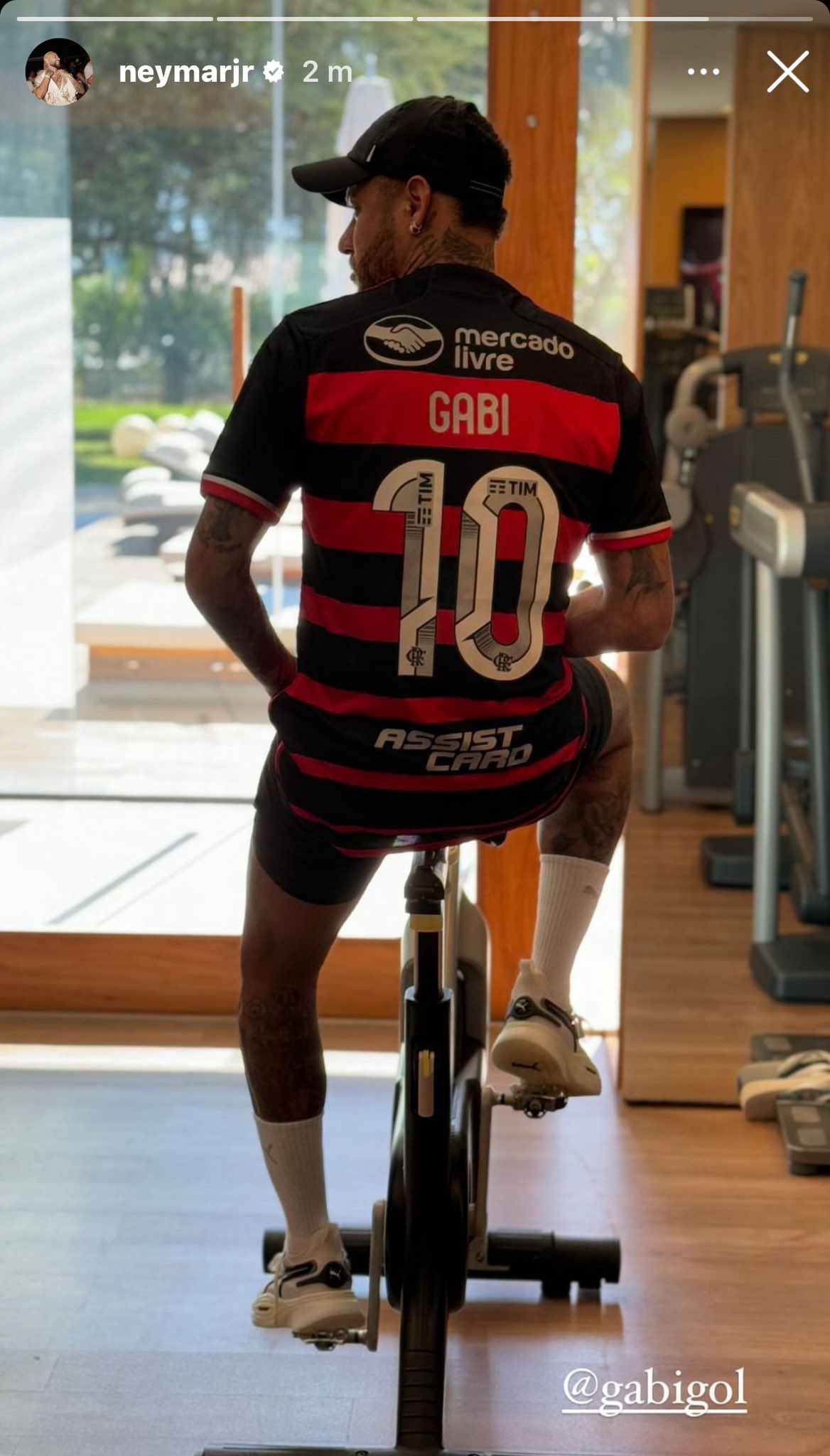 Uma foto publicada pelo jogador Neymar em seu Instagram está causando alvoroço nas redes sociais. O jogador postou uma imagem na qual aparece usando a camisa 10 do Flamengo, com o nome de Gabigol, um dos atacantes do clube.