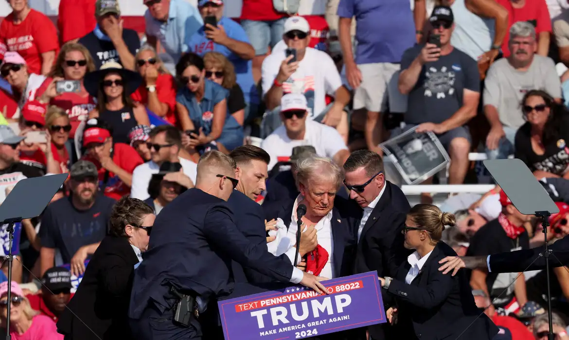 A equipe de campanha de Trump, que concorre novamente à Casa Branca nas eleições norte-americanas de novembro, disse que ele estava “bem”. O FBI, agência central de investigação dos Estados Unidos, identificou Thomas Matthew Crooks, de 20 anos, como o “sujeito envolvido” no que chamou de tentativa de assassinato.