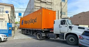 Carreta derruba poste e danifica veículos após descarregar carga no centro de Maceió 5 de junho de 2025