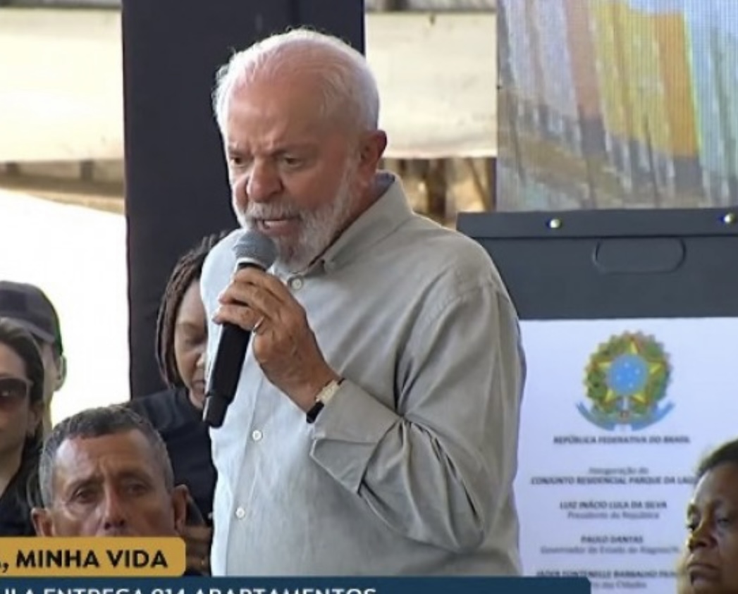 O presidente Lula, durante discurso, na manhã de hoje (10), na entrega das residências, no Parque da Lagoa, em Maceió, deu um banho de água fria nos Calheiristas.