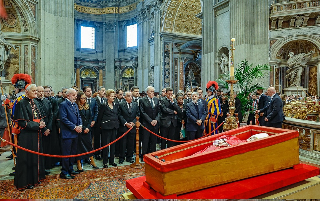Nesta sexta-feira (25), o presidente Lula e a primeira-dama Janja estiveram na Basílica de São Pedro, em Roma, para uma despedida ao Papa Francisco.