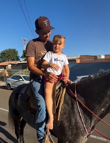 Um vídeo viralizou nas redes sociais mostrando a pequena Eloah Camile, de apenas seis anos, super feliz por ser buscada pelo seu padrasto, o “tio Léo”, na escola de cavalo.