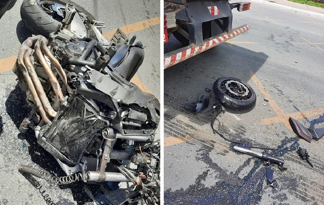 Apesar da moto ter sido destroçada pelo impacto, inicialmente só foi identificado um ferimento no braço do motociclista, que foi socorrido pelo Serviço de Atendimento Móvel de Urgência. Não há atualizações sobre seu estado de saúde.