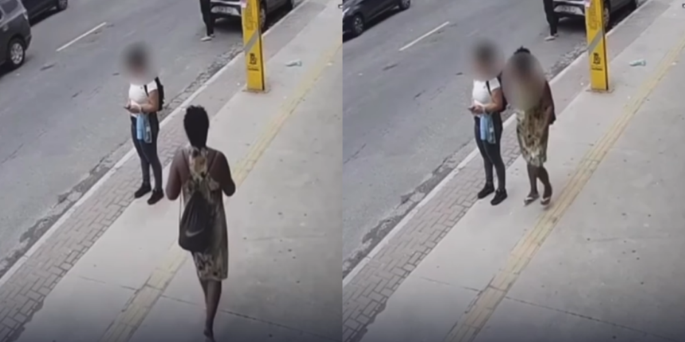 De acordo com o relato da vítima, ela estava distraída conferindo um aplicativo de transporte público quando a agressora se aproximou e a atingiu com um golpe próximo aos olhos. Após o ataque, a mulher responsável pela agressão se afastou calmamente, sem prestar qualquer explicação.