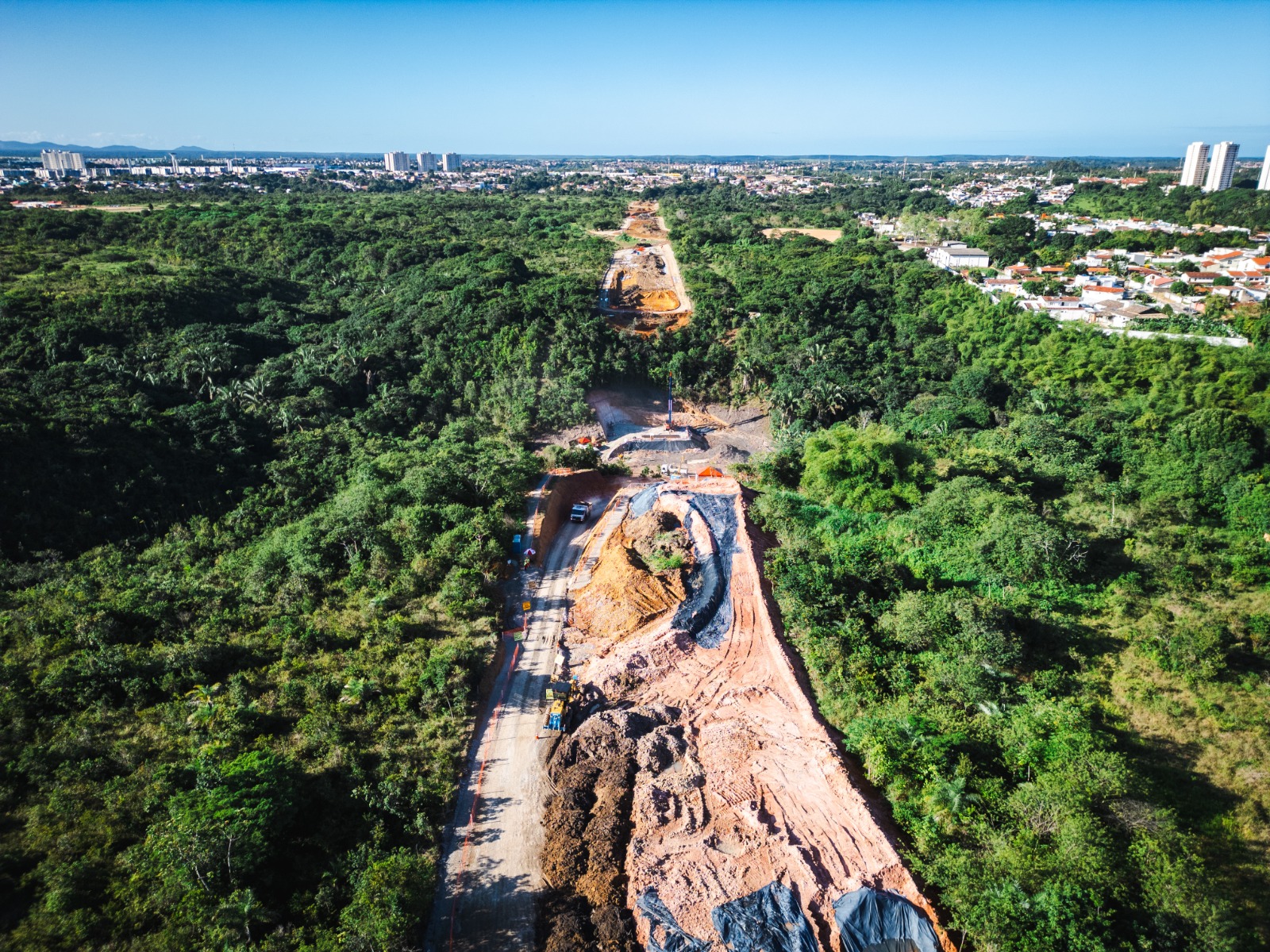 Cerca de 80% da supressão vegetal necessária já foi concluída. Além disso, as equipes da Secretaria Municipal de Infraestrutura trabalham ativamente na construção da primeira ponte, que terá cerca de 130 metros, e na execução de um bueiro celular de 58 metros para a passagem de um córrego da região.