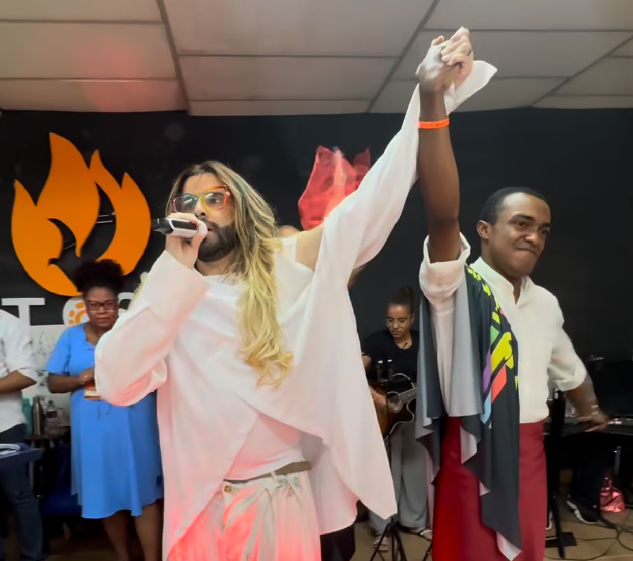 No vídeo, ele veste um terno azul e salto alto, agradecendo pelo acolhimento. Apesar do apoio de muitos, o pastor foi alvo de mensagens de ódi0.