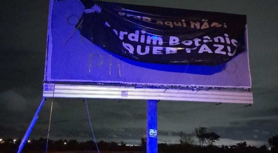 Bolsonaristas destroem outdoor contra mudança de Bolsonaro para condomínio
