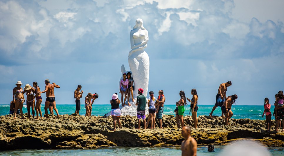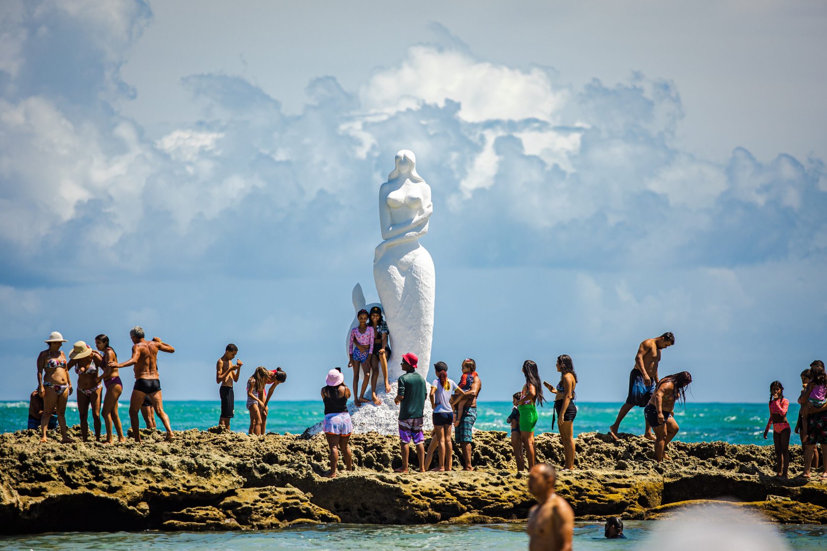 Estátua da sereia já atrai centenas de visitantes para a praia do riacho doce.