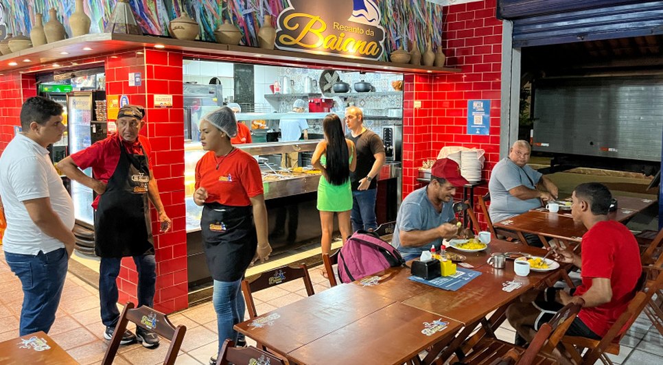 O mercado funciona 24h até o domingo (15), após o encerramento dos shows que estão sendo realizados no estacionamento do Jaraguá e em frente ao Centro de Convenções. Josefa dos Santos Silva é permissionária do mercado e revela que nunca havia aberto o restaurante para atender o público noturno do Jaraguá.