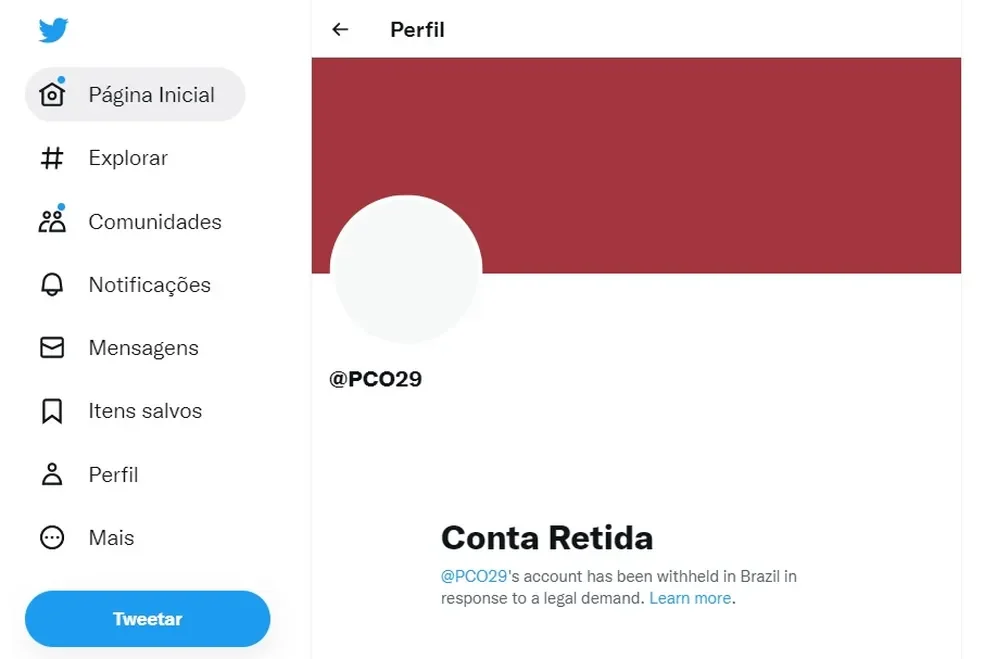 PCO tem perfil bloqueado no Twitter pela justiça pela segunda vez em 8 meses