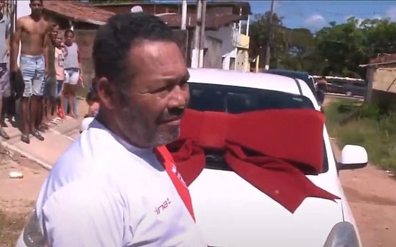 Porém, nesta terça-feira (24), o torcedor do CRB ganhou um carro novo. O presente veio de uma vaquinha na internet, sendo entregue na sua casa pelos influenciadores digitais Verolayne e Williams Correia.