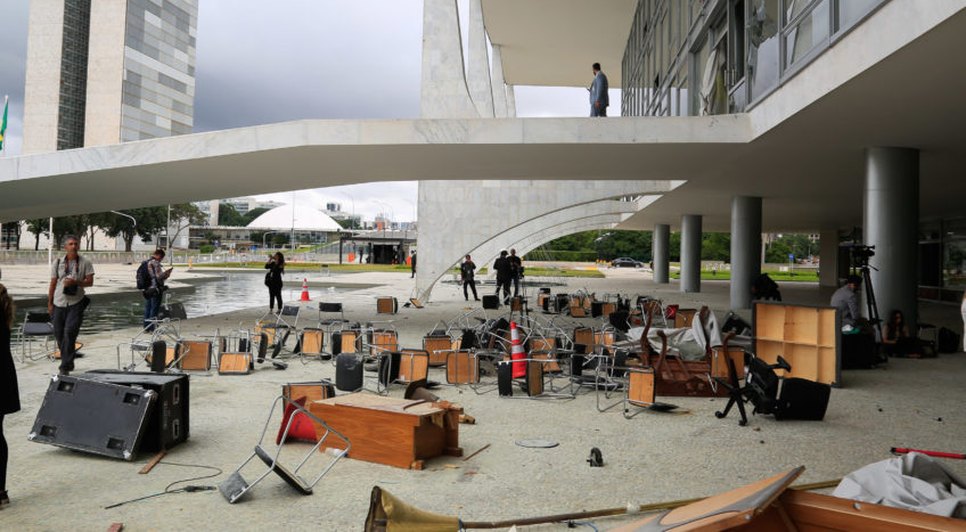O bloqueio de bens de mais 40 envolvidos no ocorrido do domingo 8 foi pedido pela Advocacia-Geral da União (AGU) em uma ação na Justiça Federal do Distrito Federal. O pedido recai sobre 40 pessoas físicas presas em flagrante pela depredação das sedes dos Três Poderes.