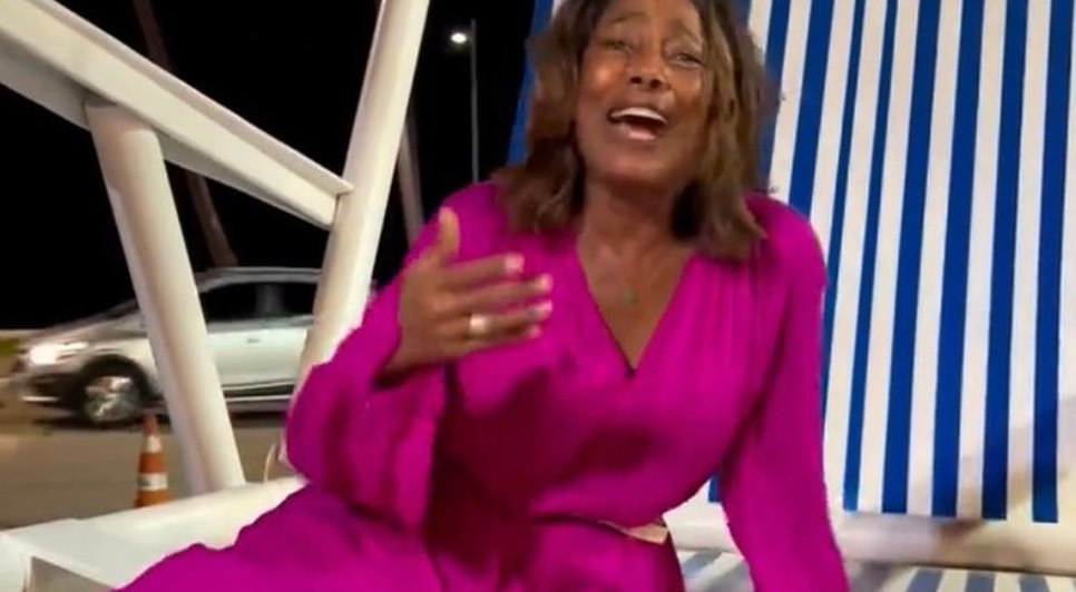 Glória Maria em sua ultima passagem por Alagoas conheceu a cadeira gigante na orla de Maceió.