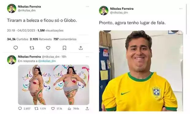 Logo, o deputado, que recuperou recentemente sua conta do Instagram, zombou da publicação dizendo: “Tiraram a beleza e ficou só o Globo”. O comentário de Nikolas não foi bem visto na internet, e sua atitude foi considerada como gordofobia pelo público.