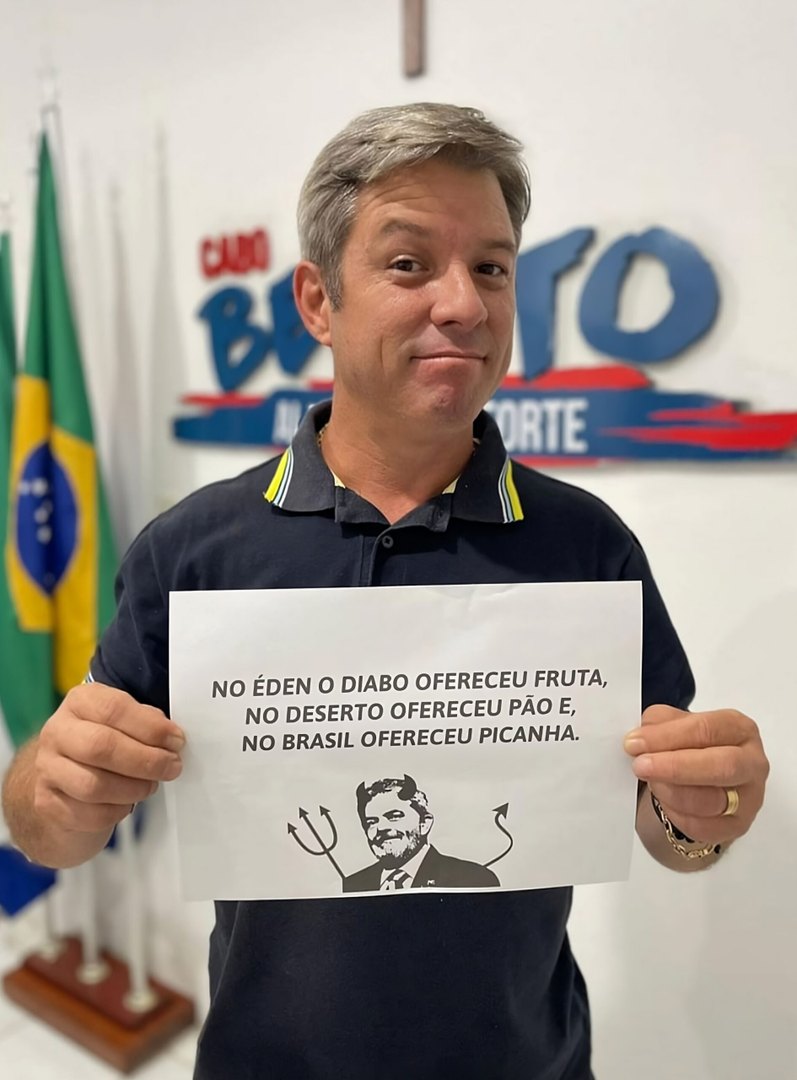 Bebeto postou uma foto com o texto impresso: “No Éden o diabo ofereceu a fruta, no deserto ofereceu pão e, no Brasil ofereceu picanha”, abaixo a imagem de Lula “endiabrado”, se assim podemos dizer.