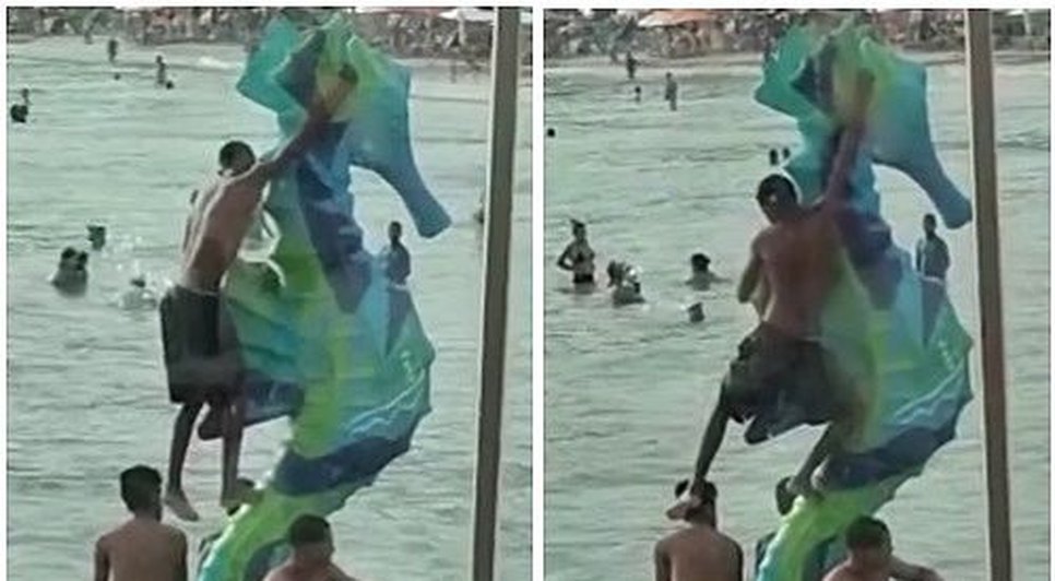 Vídeo mostra jovem pendurado em escultura recém-instalada em praia de Ponta Verde