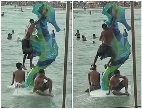 Na filmagem é possível observar um jovem, aparentemente adolescente, agarrado na obra. Ele teria escalado a escultura para subir até a cabeça. O vídeo mostra o instante em que ele desce depois da "brincadeira" e mergulha no mar. Também dá pra perceber a presença de três jovens sentados na base da escultura. As imagens foram publicadas pelo perfil de humor no Instagram Maceió Ordinário.