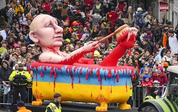 Carnaval da Alemanha cria carros alegóricos satirizando Vladimir Putin.