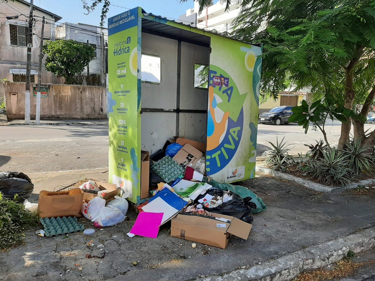 Vandalismo a pontos de descarte de material reciclável gera prejuízo de R$56 mil para prefeitura de Maceió.