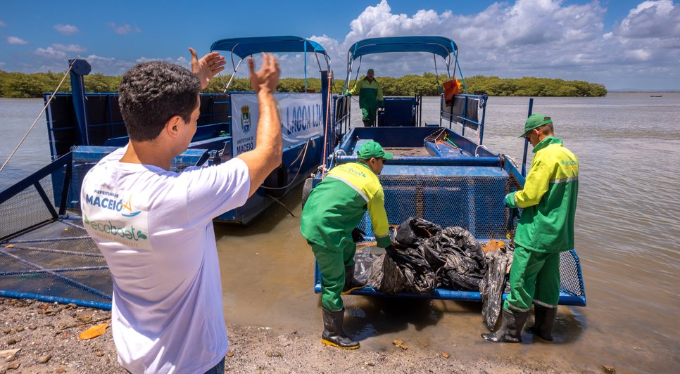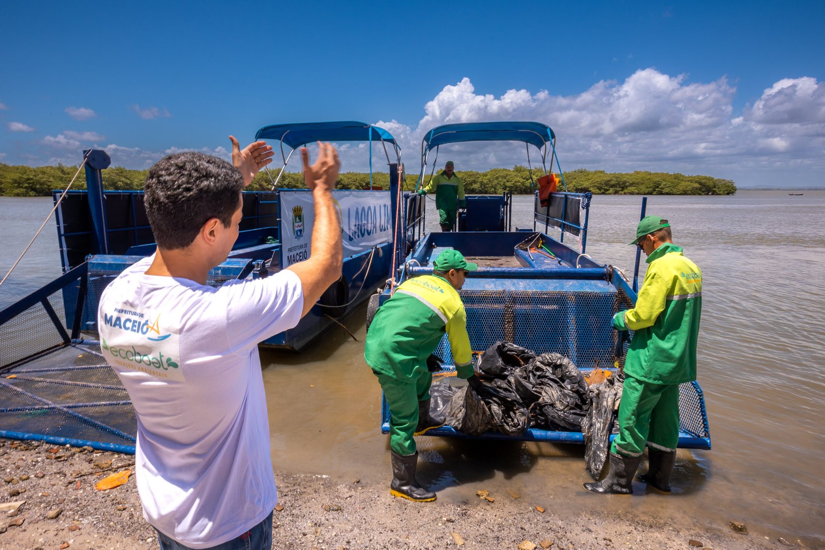 Em cerca de dois meses, mais de 130 mil quilos de lixo foram retirados da Lagoa Mundaú, o que equivale a 325 catamarãs cheios de resíduos, que é o equipamento utilizado diariamente para realizar a limpeza da lagoa.