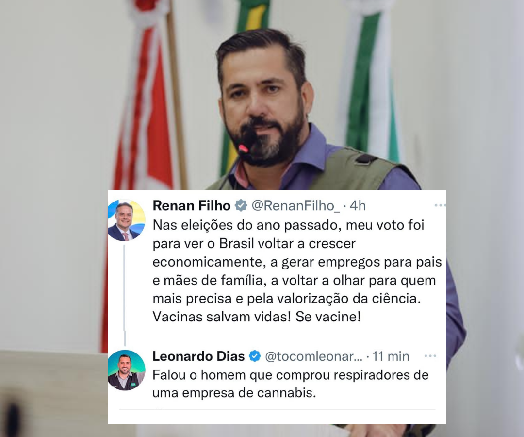 Através das suas redes sociais, o vereador de Maceió, Leonardo Dias (PL), acusou o ex-governador Renan Filho (MDB), de ter comprado respiradores de uma empresa de que vende cannabis.