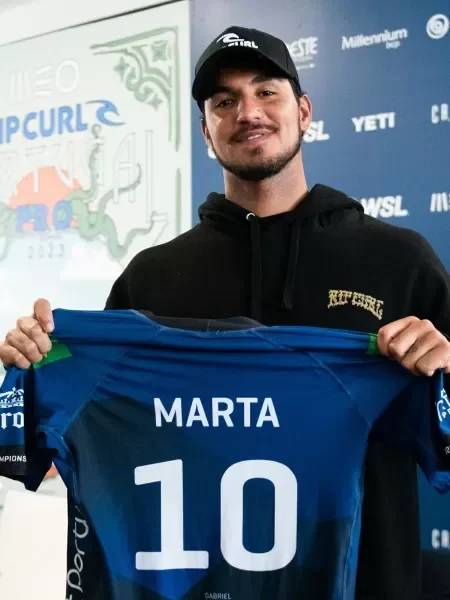 Na etapa de Portugal do Circuito Mundial de Surfe, o surfista Gabriel Medina usou lycra em homenagem a futebolista alagoana Marta. A competição teve início no dia de hoje, 8.
