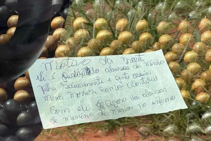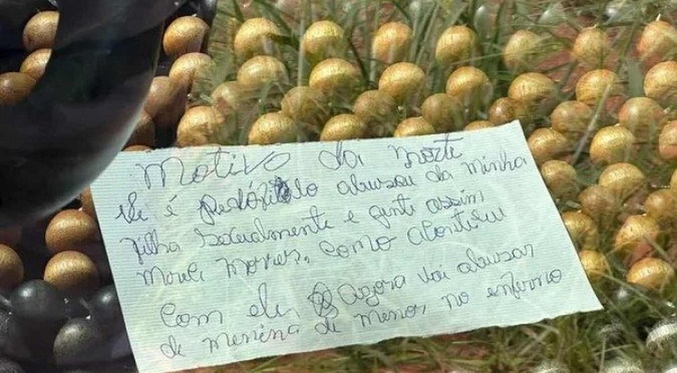 “Motivo da morte: Ele é pedófilo, abusou da minha filha sexualmente e gente assim merece morrer, como aconteceu com ele agora vai abusar de menina de menor no inferno”, assim estava escrito no bilhete.