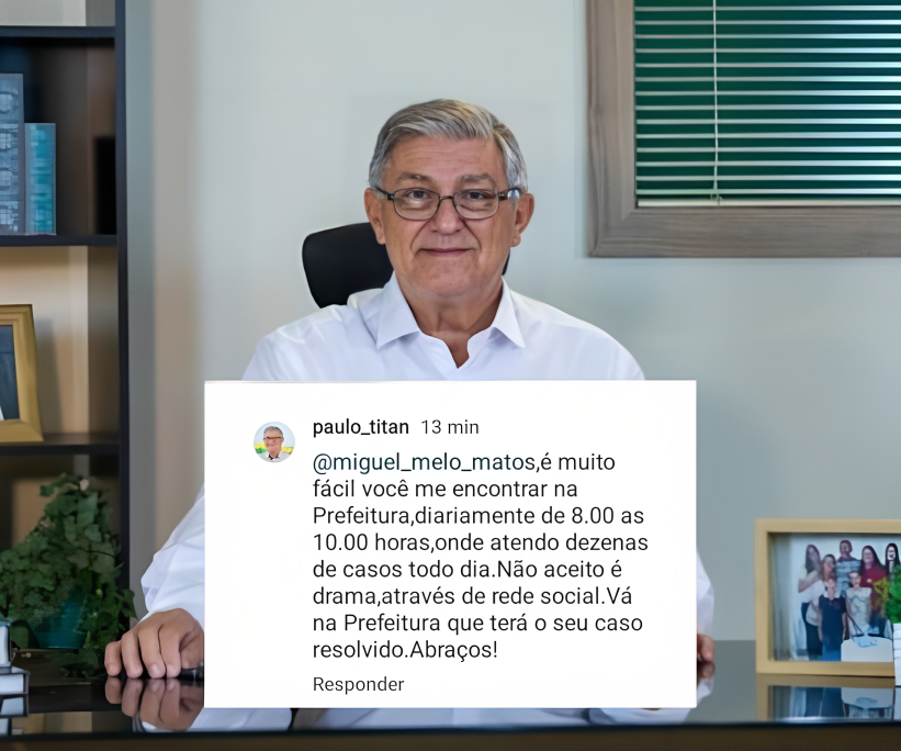 A resposta de Paulo Titan gerou indignação nas redes sociais, tanto pela forma que a mãe foi tratado quanto pelo fato do prefeito afirmar trabalhar apenas duas horas diárias, das 08:00 às 10:00, o horário em que diz estar na prefeitura.