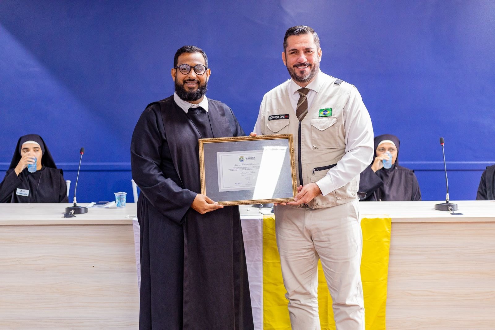 A proposição foi feita pelo vereador Leonardo Dias (PL) e aprovada por unanimidade pela Casa. Na tribuna do plenário o parlamentar justificou a concessão das honrarias.