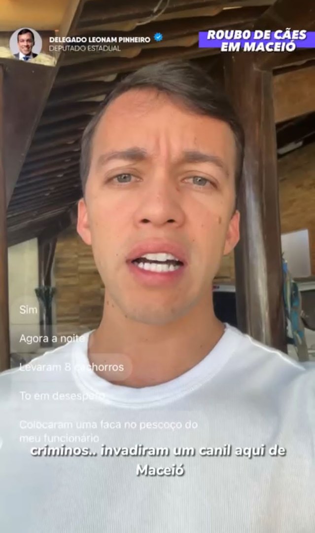 O deputado estadual e presidente da Comissão de Meio Ambiente e Proteção dos Animais da Assembleia Legislativa de Alagoas, Delegado Leonam Pinheiro (União Pinheiro) publicou na sua conta do Instagram o caso de oito cães que foram roubados de um canil, na noite de ontem (21), na parte alta de Maceió.
