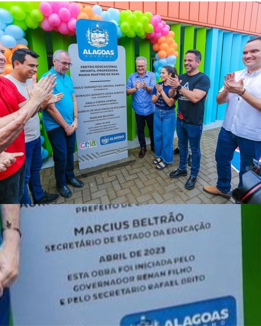 O totem de inauguração de um centro educacional infantil no município de Chã Preta, neste final de semana, reafirma a disputa de poder na secretaria estadual de Educação (Seduc) e o ego elevado do ex-governador Renan Filho (MDB).