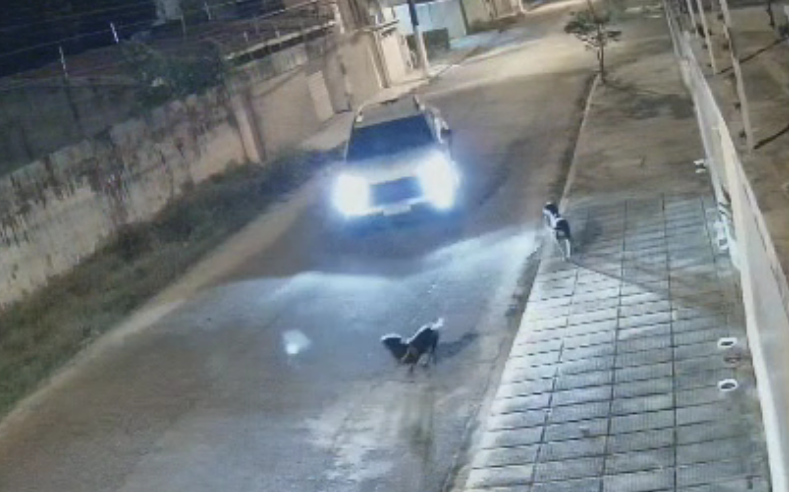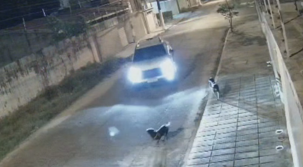 As imagens revelam que o condutor do Fiat Toro foi embora sem prestar socorro após atropelar o animal na Avenida Jucá Ventos Nunes, no bairro do Jaraguá, na última sexta-feira (19).