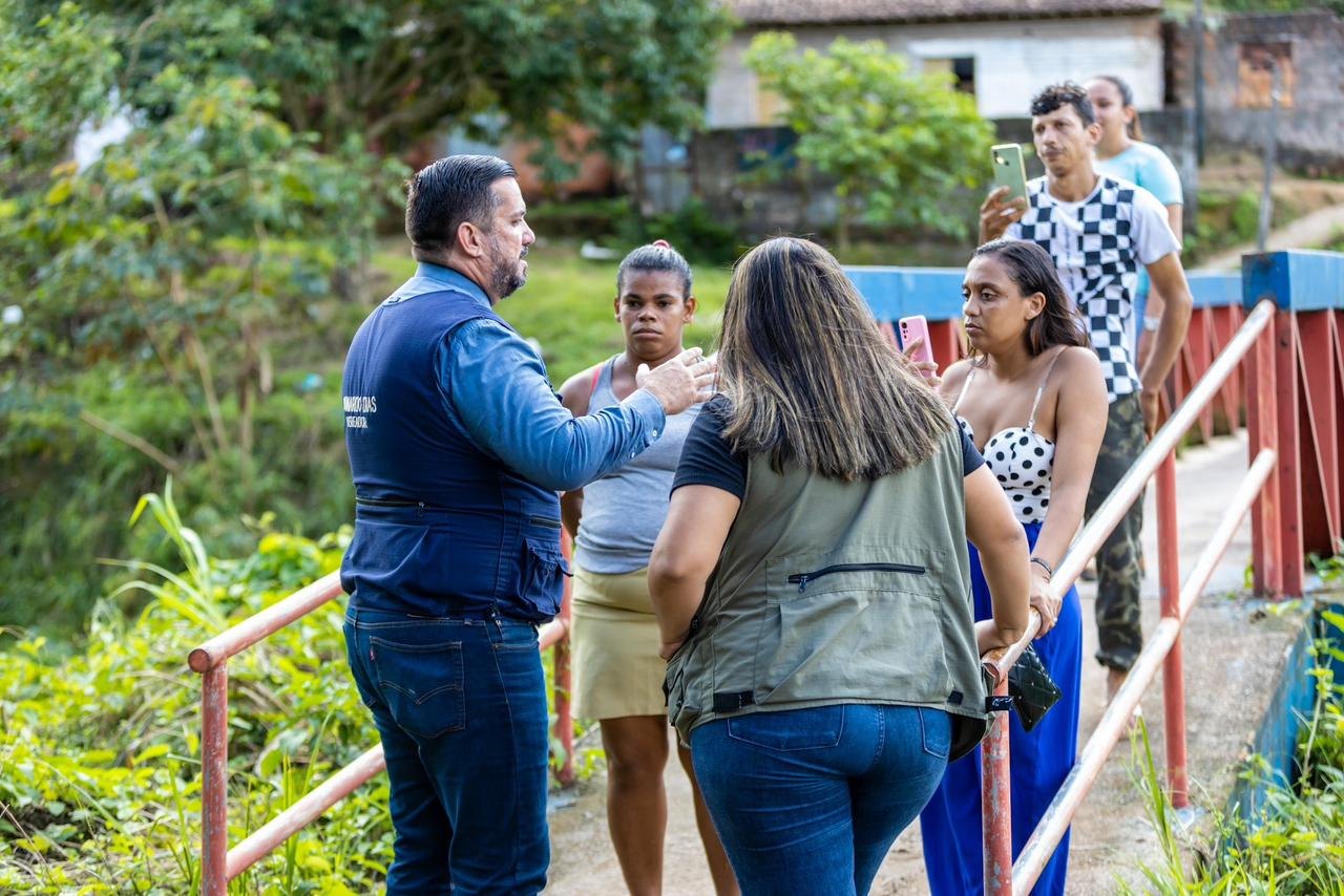 Durante visita, Leonardo Dias pode constatar de perto problemas na acessibilidade. No local não há pavimentação. Além disso, algumas pontes da região foram danificadas pelas fortes chuvas que atingiram Maceió nas últimas semanas.