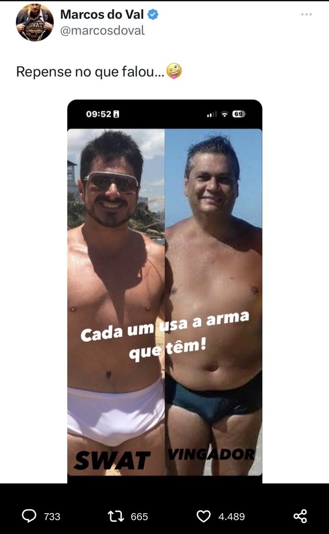 Marcos do Val comete quebra de decoro ao usar foto de sunga para se comparar a Flávio Dino