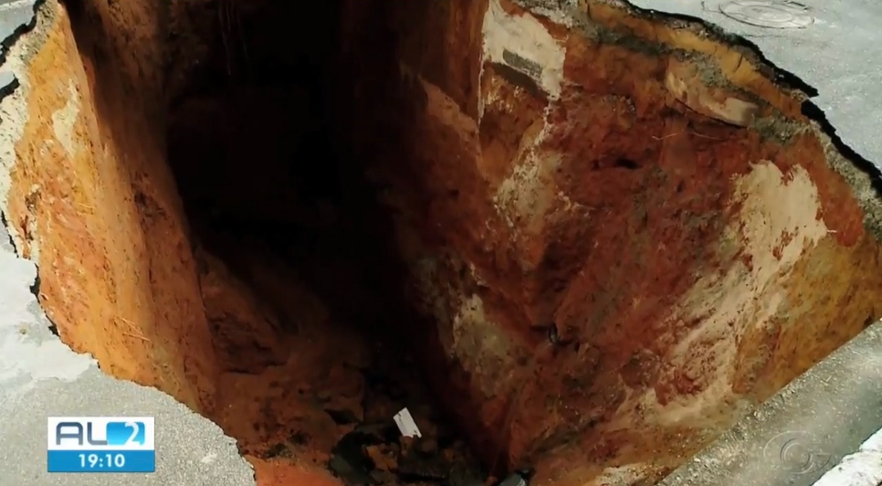 Um dos buracos surgiu na rua principal do residencial. O problema começou com uma pequena rachadura, mas segundo residentes, transformou-se em um buraco de oito metros de profundidade. Engenheiros da Prefeitura de Satuba realizaram vistoria no local das crateras desta propriedade. O relatório deve ser concluído na sexta-feira (2).