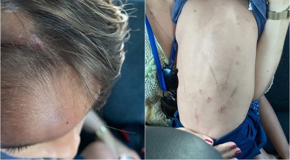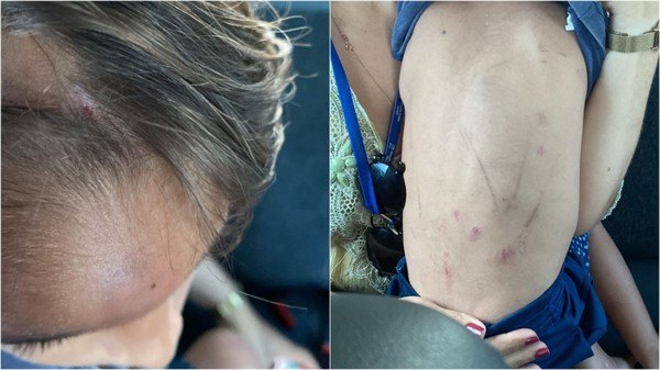 Imagens divulgadas pelo Conselho Tutelar revelam marcas de espancamento na cabeça e no corpo da criança. A conselheira tutelar Valmênia Santos falou que a criança contou que foi agredido pelos pais com murros, arranhões, tapas, fios e chineladas.