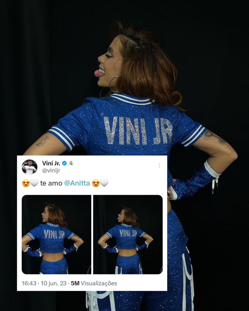 Sendo a primeira brasileira sul-americana a se apresentar na competição, Anitta aproveitou a oportunidade para prestar uma homenagem ao jogador do Real Madrid, Vinicius Jr. Anitta se apresentou com o nome do atleta nas costas e recebeu o carinho do mesmo nas redes sociais.