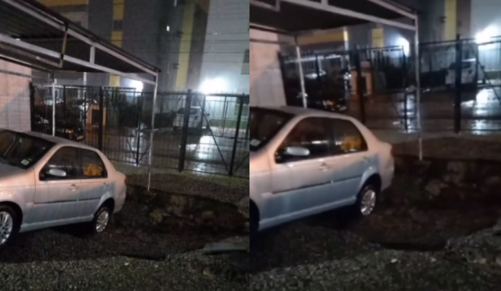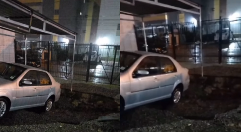Na noite desta terça-feira (27) uma forte chuva atingiu Maceió, um grande buraco apareceu no estacionamento de uma área residencial da Gruta de Lourdes, e um carro afundou no buraco. Agentes da Defesa Civil foram enviados ao local.